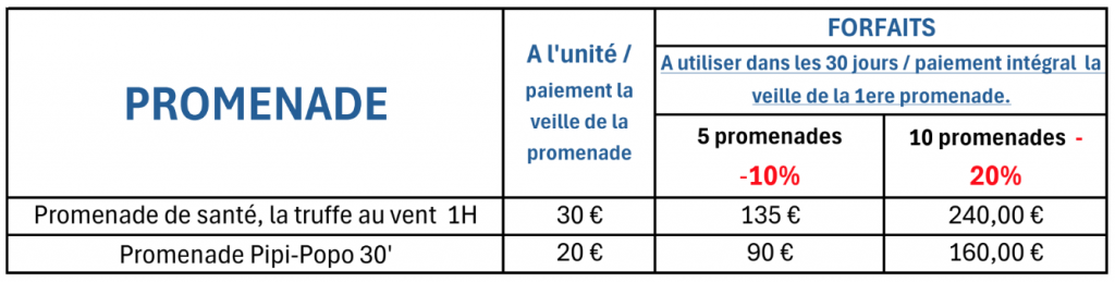 Une tarification abordable : Je pense que tous les chiens méritent de profiter de promenades régulières, c’est pourquoi je propose des tarifs compétitifs et des forfaits flexibles pour répondre à tous vos besoins et à votre budget.